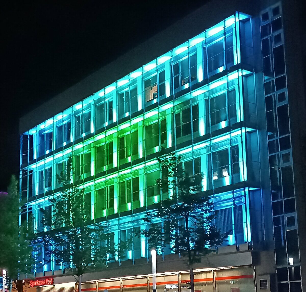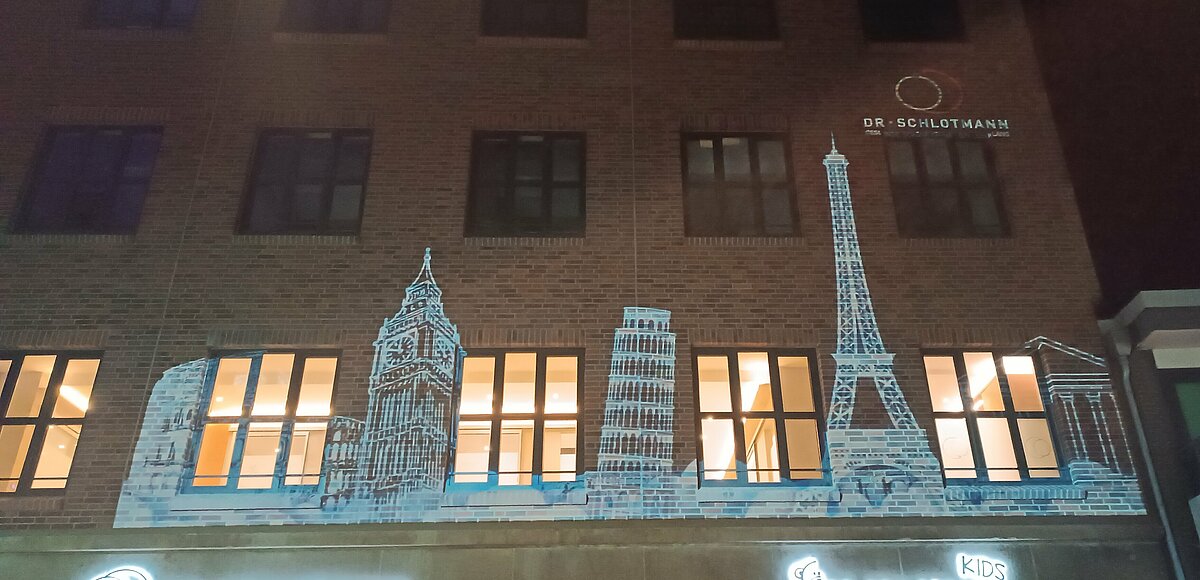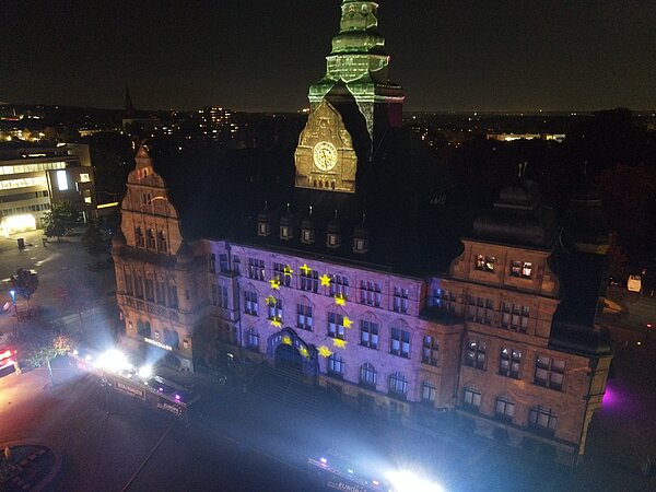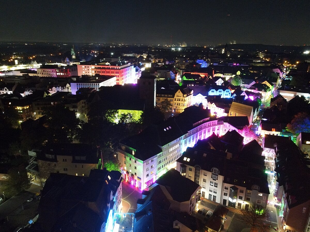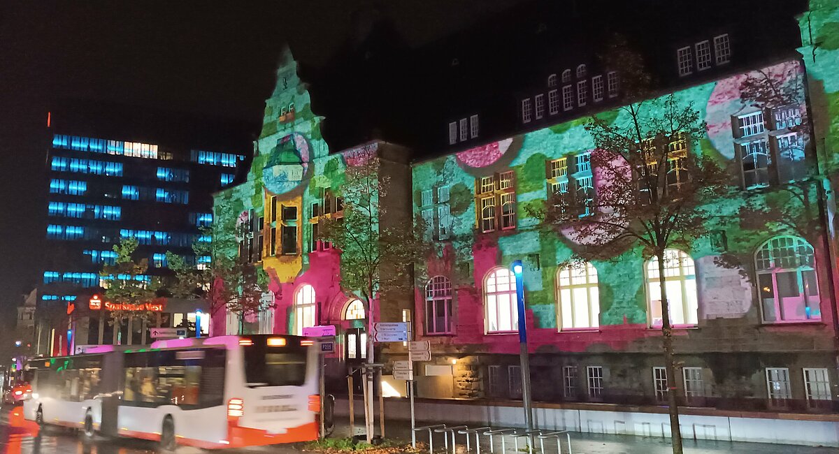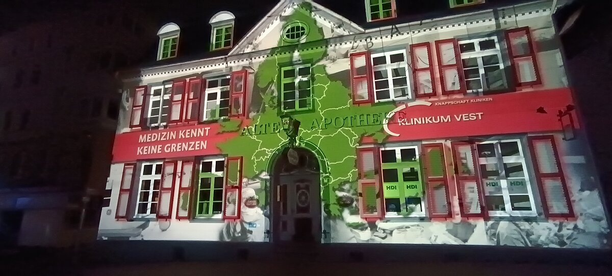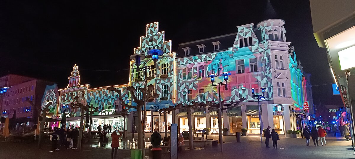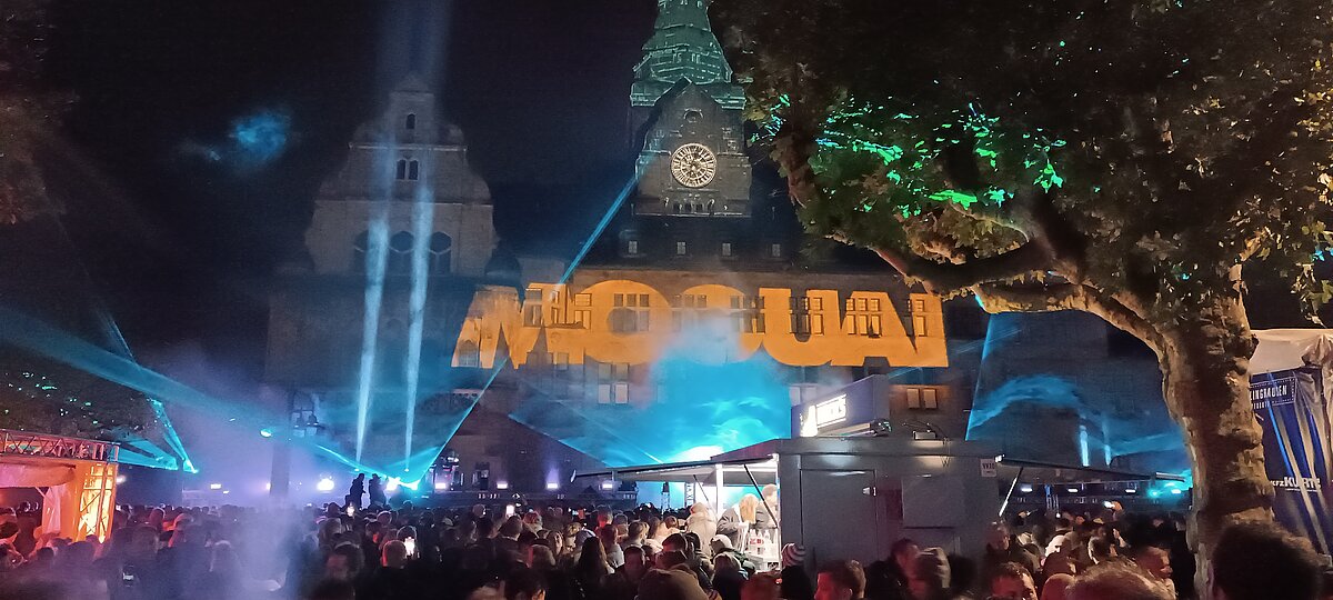 Vom 20. Oktober bis 05. November 2023 wurde die Recklinghäuser Innenstadt wieder beleuchtet: facettenreiche Lichtinstallationen illuminierten historische und markante Gebäude und zeigten die Vielfälltigkeit der wunderschönen Innenstadt. Das Thema der Show lautete -Mitten in Europa - Menschen und Metropolen.