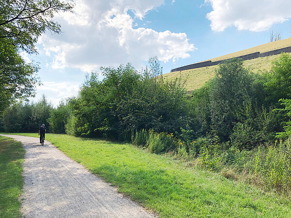 Ein Fluss, zwei zusammengehörende Themen, drei zusammenfließende Bäche und vier Halden zum hoppen, das zeichnet diese Route aus. Der Startpunkt ist der Wanderparkplatz Heringstrasse am östlichen Fuß der Halde 22. in Gladbeck. Die Route führt über eine Wegstrecke von 10,6 km in gut 4 Stunden an 15 Erzählstationen vorbei. (Quelle: Kreis Recklinghausen)