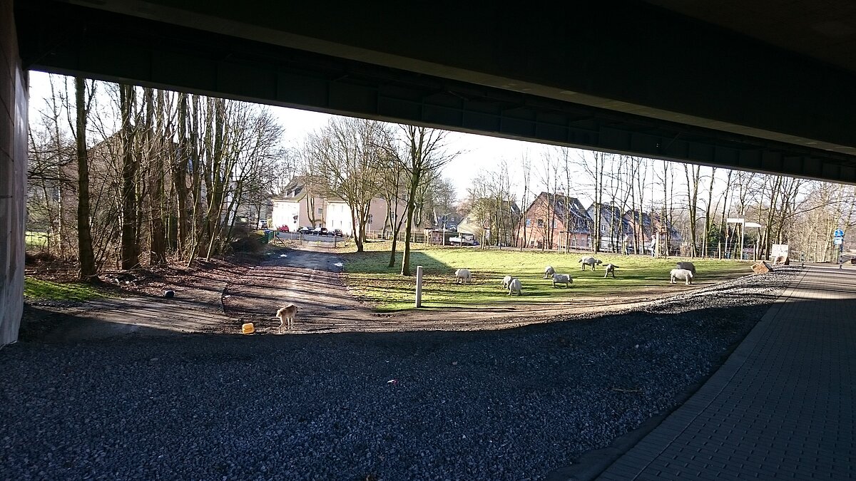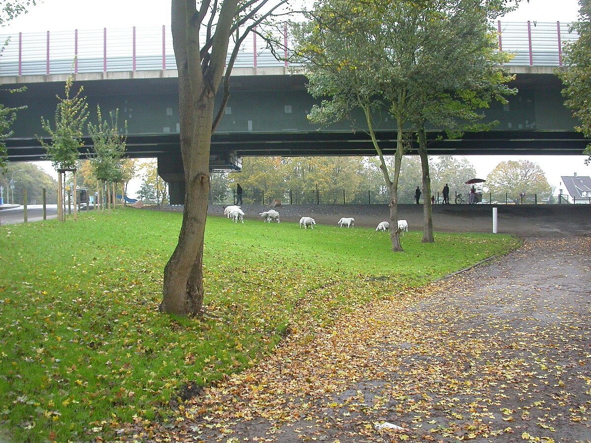 früher durch Auenlandschaft schlängelnder Fluss -- in Bergbauepoche von Menschenhand umgeformt von natürlichem Fluss zu Abwasserkanal: offene Kloake, begradigt und zubetoniert -- in Tiefen bis 40 m Bau von rd. 330 Schachtbauwerken mit Durchmessern bis 3,6 m für das Abwasser mit einem -- Umbau und Renaturierung der Emscher Projekt bis 2020