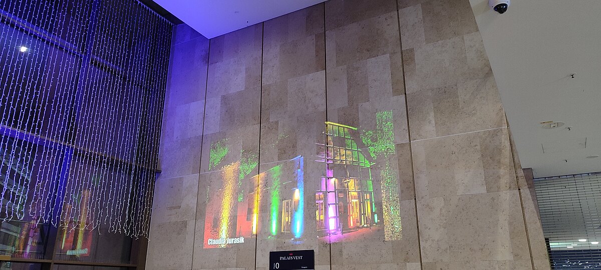 Das Palais Vest ist seit 2014 das große Einkaufszentrum in Recklinghausen. An der Außenwand des Palais zur Lohrhofstraße werden die schönsten Fotos aus den verschiedenen Recklinghausen leuchtet Veranstaltungen präsentiert. In den letzten Jahren wurden diese Bilder im Innenraum angezeigt.