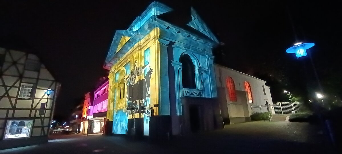 Die Gymnasialkirche mit dem vierjochigen Saalbau war ab 1658 Franziskanerkirche. Sie musste nach einem Stadtbrand 1686 wieder aufgebaut werden. Die Ostfront der Kirche wurde 1838 klassizistisch verändert aufgrund der Umwidmung zur Gymnasialkirche. Von 1923 bis 1925 diente die Kirche als Garnisonskirche der französischen Besatzungstruppen und 1927 erfolgte eine Umgestaltung in neo-barocker Art. Die klassizistische Ausstattung bildet eine geschlossene Einheit.