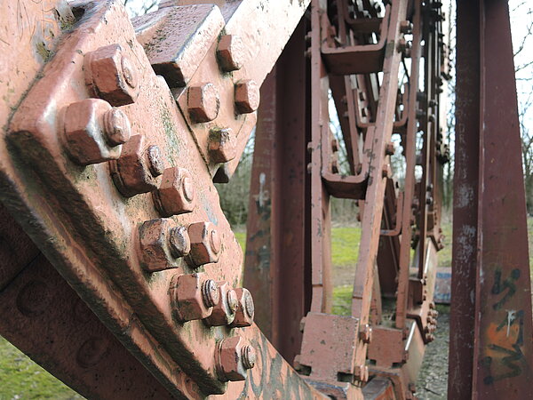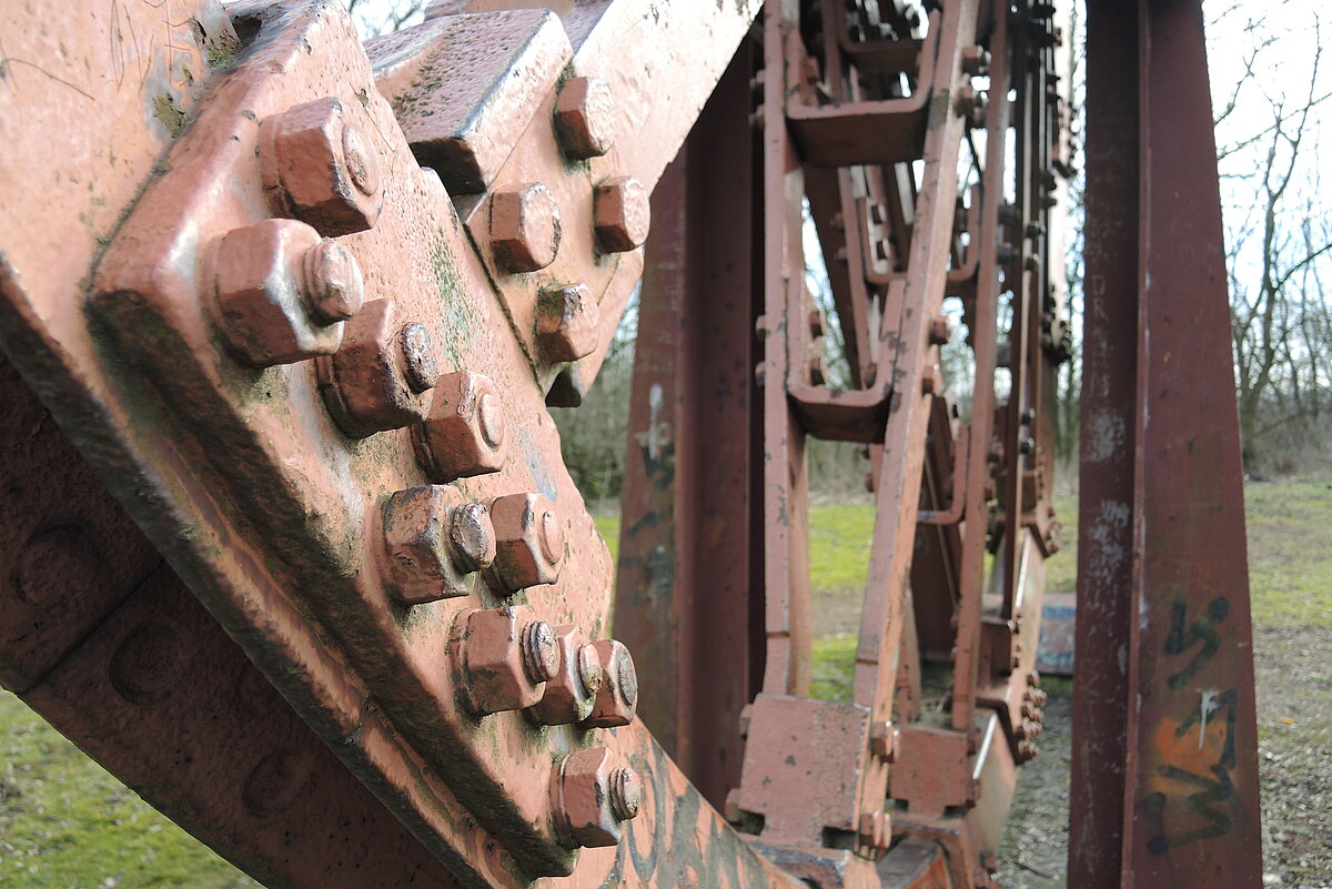 Zeche Mathias Stinnes ab 1872 in Essen-Karnap Schacht I -- Stinnes III/IV in Gladbeck-Brauck ab 1905 -- Halden durchnummeriert, diese die 19. -- Schüttung bis Anfang der 1970er -- Höhe 35 m -- erste begrünte Halde Gladbecks -- Landmarkenkunst alte Seilscheibe Mathias Stinnes