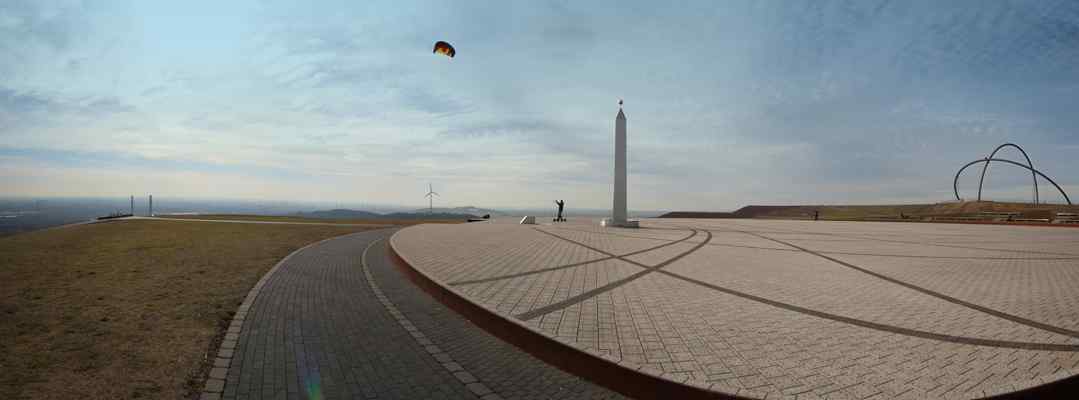 höchster Punkt über 110 m über Grund -- Panoramablicke rundum -- "Ist das grün hier" -- Gestaltung der Halde Hoheward nach Masterplan "Neue Horizonte" -- Horizont-Observatorium auf Top-Horizont zwischen Himmel und Erde -- Horizontobservatorium und Sonnenuhr ermöglichen, Lauf der Sonne und der Gestirne zu beobachten