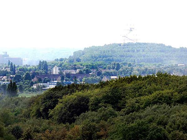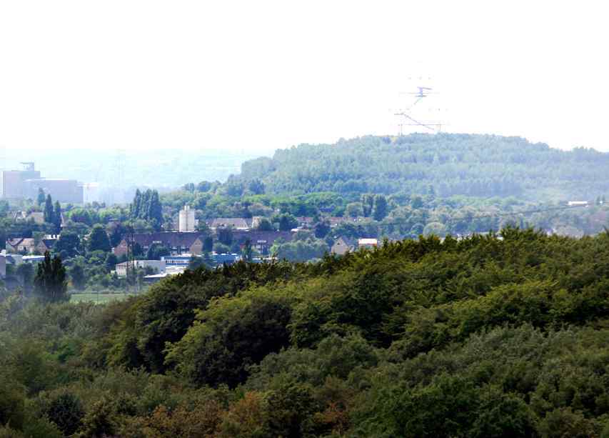 Aussichtspunkt zum Tetraeder Halde Beckstraße in Bottrop -- 50 m hohe, begehbare Stahlkonstruktion als Landmarke -- Kokerei Prosper mit Chance auf Abstich -- im Zechenverbund mit Mathias Stinnes Kokerei in Welheim ab 1923 Versuchsanlage zur Herstellung von Glas -- ab 1924 Glasröhren, Wirtschaftsglas, Glasflaschen der Ruhrglas -- in 1950er Jahren v.a. Einmachgläser