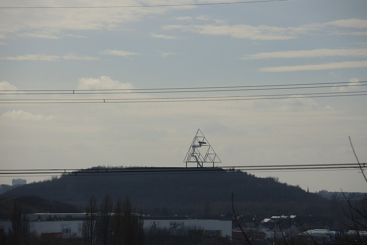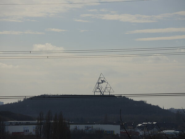 Aussichtspunkt zum Tetraeder Halde Beckstraße in Bottrop -- 50 m hohe, begehbare Stahlkonstruktion als Landmarke -- Kokerei Prosper mit Chance auf Abstich -- im Zechenverbund mit Mathias Stinnes Kokerei in Welheim ab 1923 Versuchsanlage zur Herstellung von Glas -- ab 1924 Glasröhren, Wirtschaftsglas, Glasflaschen der Ruhrglas -- in 1950er Jahren v.a. Einmachgläser