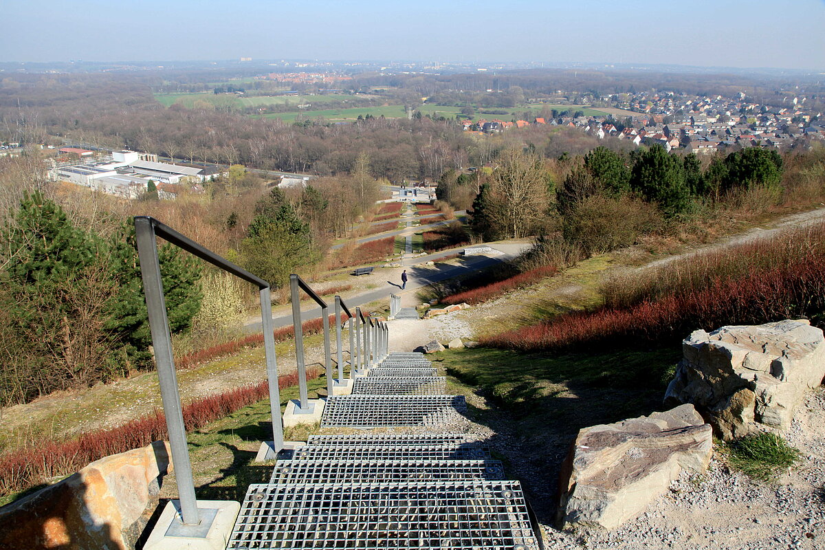 Auf diesem gut 16 km langen Wanderweg kann man viele Höhepunkte des Landschaftsparks Hoheward sehen und erklimmen. Start ist am Parkplatz „Am Handweiser“ an der Castroper Straße. Man erklimmt die Treppenstufen zum „Balkon mit Aussicht“ und weiter zum Horizontobservatorium auf der Halde Hoheward. Von hier hat man einen tollen Ausblick. Vorbei am Obelisken, der den Sonnenstand zeigt, geht es über die Balkon-Promenade weiter zur Halde Hoppenbruch mit ihrem Windrad. Die Edelstahlskulpturen erläutern das Phänomen Windkraft. Weiter führt die Strecke durch die Naturschutzgebiete Resser Wäldchen und Emscherbruch, wo durch Bergsenkungen Nassbiotope mit einmaligen Voraussetzungen für Flora und Fauna entstanden. Nach dem Ewaldsee, der früher als Kühlwasser-Reservoir der Zeche Ewald diente, kommt bald das Besucherzentrum Hoheward auf Zeche Ewald. Über die Balkon-Promenade geht es danach zurück zum Ausgangspunkt