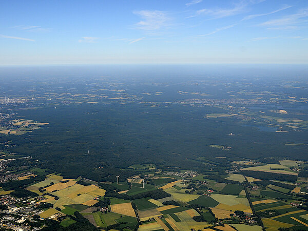 Gebiet der Haard 5.500 ha -- Höhen 40-157 m ü.NN -- Niederschläge 750-850 mm -- um 1800 wüstenähnlich -- war Heidelandschaft -- Herzog von Arenberg betrieb im 19. Jh. Aufforstung -- Ziel war Versorgung mit Grubenholz -- dank neuer Stollenbautechniken nicht benötigt -- Baumbestand heute Laubholz 45 % u.a. Buche und Eiche, Rest Nadelholz, insb. Schwarzkiefer