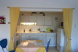 … 2 Schlafzimmer mit 2 Betten, 1 Wohnraum mit offener Küche, Bad mit Duschwanne und WC, komplett möbliert mit…