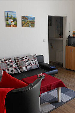 … In diesem Fall würde man sich Bad, Wohnzimmer und Küche teilen. Vor dem Haus gibt es gute Parkmöglichkeiten.…